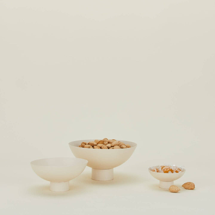 ON SOLID FOOTING Welcome to the Essential Collection, Footed Bowls Available in Ivory with powder-coated stainless steel to stand the test of time We love them as fruit-filled centerpieces, flower bowls, + decorative accents in any room